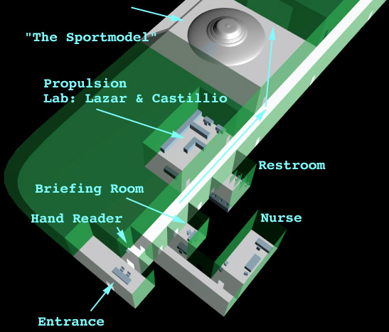 Conspiracy Therory "There's a small segment of the United States government that makes scientific and technological judgments from a knowledge base that is not available to the general public. When someone is indoctrinated at S4, they are exposed to at least part of that knowledge base. When I first began at S4, I would randomly be taken into a small room, which contained a table, a chair, and 120 or so briefings in blue folders. I'd be left there to read for varying amounts of time, usually about half an hour. These briefings contained a wide spectrum of information, mostly relating to aliens and alien technology. These reports appeared to be an overview of alien information which could be used to brief scientists from any field about the scope of the whole project, and not just their specific field of endeavor. " The Briefing Room "The information in the overview of project Galileo was accurate. I read the overview and later witnessed evidence which proved it to be accurate. So it is possible that scientists involved with other projects could have seen evidence that these other overviews were also accurate, but I can't make that assertion. To me, these reports were simply words and pictures on paper. So to keep from saying allegedly and supposedly in every sentence, Lazar relays this information to the public as he read it since he already put this disclaimer on it. |