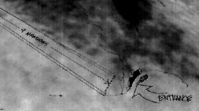 When the bus that transported Lazar and others from the Groom Lake facility reached Papoose Lake or S4, it made a sharp left turn after it passed the hangar doors to its left. Once stopped, the bus door opened out to another steel door inset in the side of the mountain. The "workers" would step out, past guards holding barking snarling dogs. Except these dogs were different. For all the fangs and snarling and barking, there was no sound coming out. The dogs had their vocal chords cut out to avoid being detected. Once inside the door, there was a single guard sitting at a desk in a barren room. Behind him was a door. The entrants were checked and led to another small room with a handreader and another door. This door led into the long hallway which ran the length of the hangar doors and also led to the briefing rooms, restroom and nurse's station. The white areas are the only areas Lazar was allowed to cover. And even then under guard. |