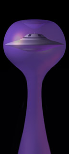 As the gravitational field from the amplifiers becomes more intense, the form of the space/time around the disc not only bends upward, but at maximum distortion, actually folds over into almost a heart shape around the top of the disc.